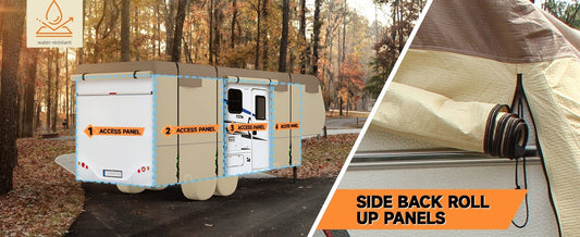 5th Wheel RV Waterproof Cover – Includes 4 Tire Covers, Tongue Jack, Gutter Cover & Windproof Ropes